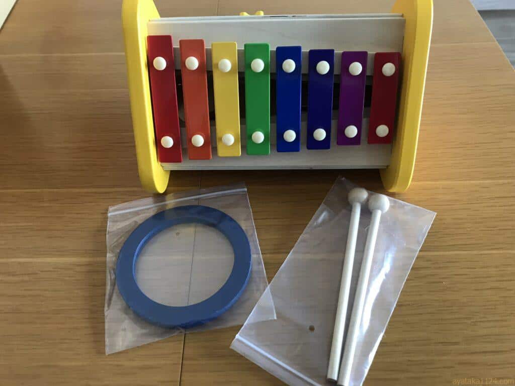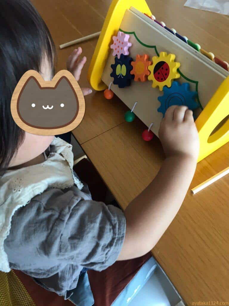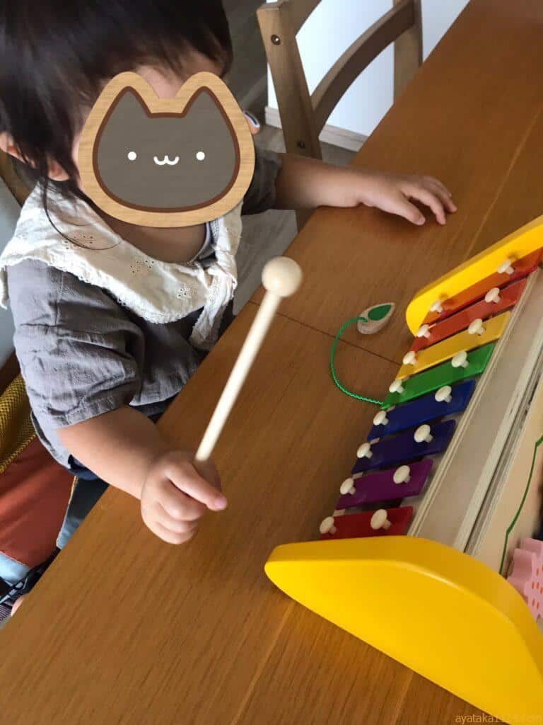 音が出るのが楽しいようで、笑顔で遊んでいました。
