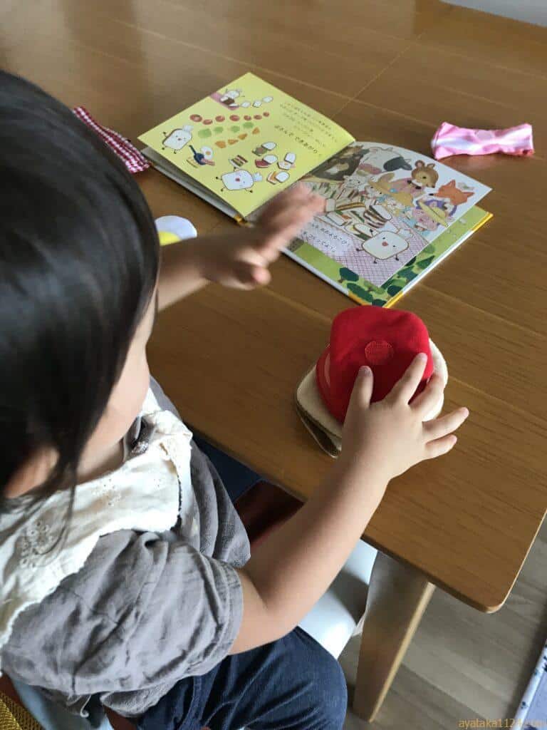 絵本だけでも楽しめるし、布のおもちゃだけでも遊べます。